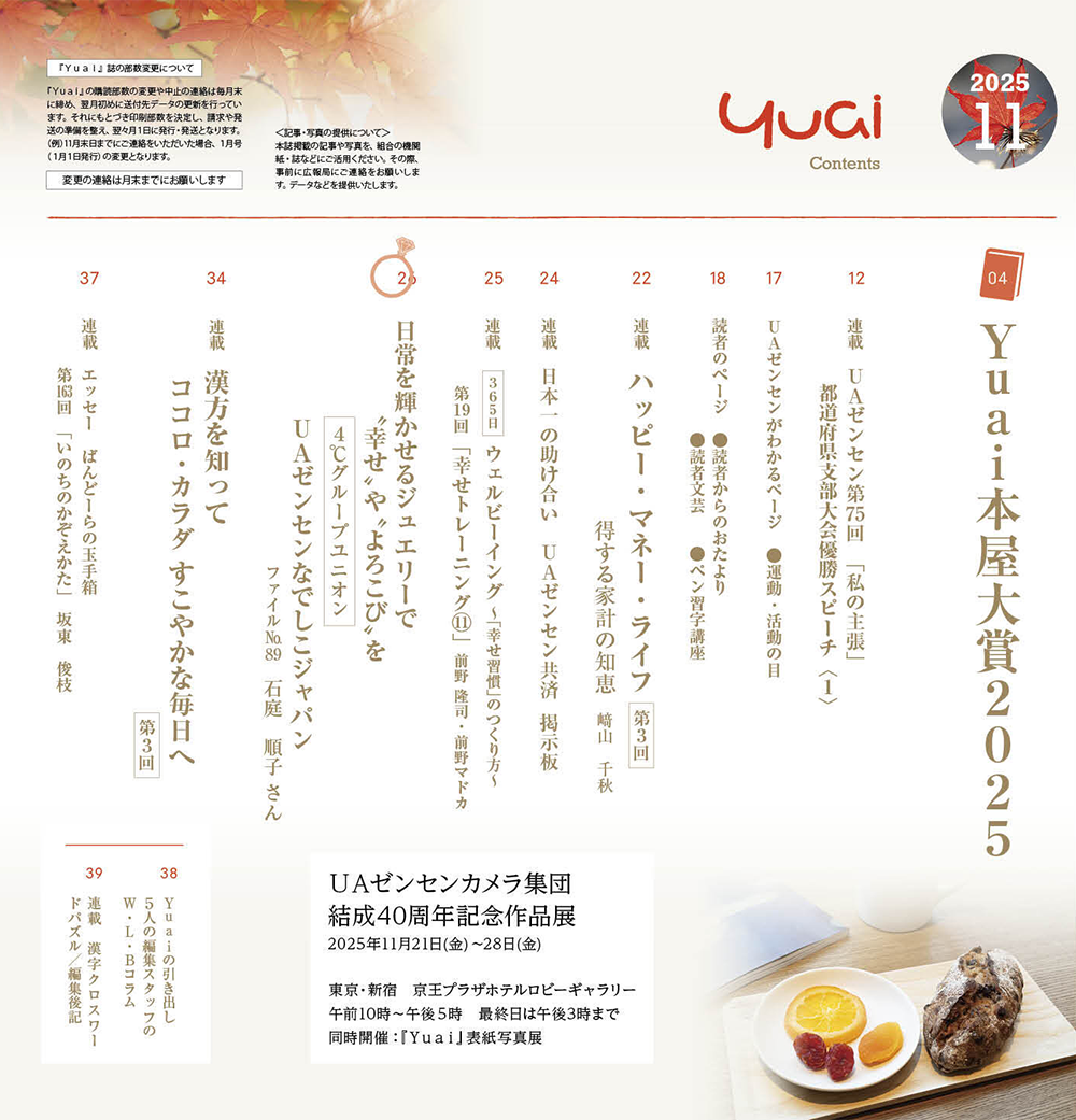 今月は、“読書の秋”の恒例企画、書店組合の仲間による「Yuai本屋大賞2025」と、ジュエリーショップを展開する4℃グループユニオンの仲間を特集します。読者プレゼントもお見逃しなく。
