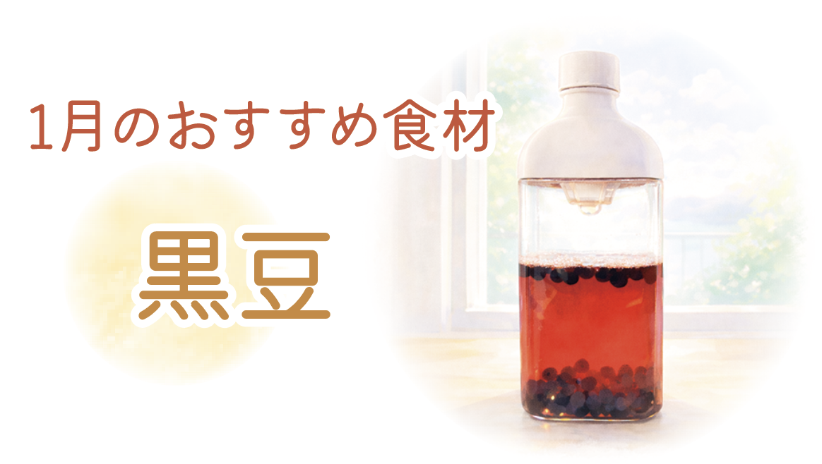 黒豆は「腎」の働きを高める代表的な食材です。疲労回復や老化防止に役立つだけでなく、体内の血や水分の巡りを良くし、冷えからカラダを守ります。ぜひ黒豆酒の常備を。